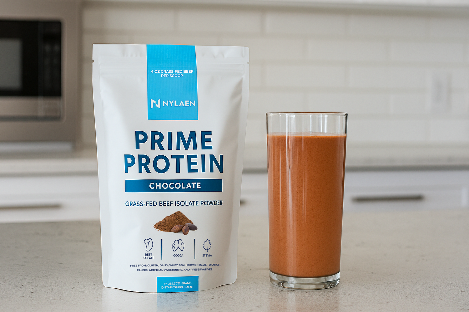 Introducing, Prime Protein. Crafted from 100% grass-fed beef, delivering 21g of pure, clean protein per serving. No dairy, no fillers, no artificial junk—just real nutrition.