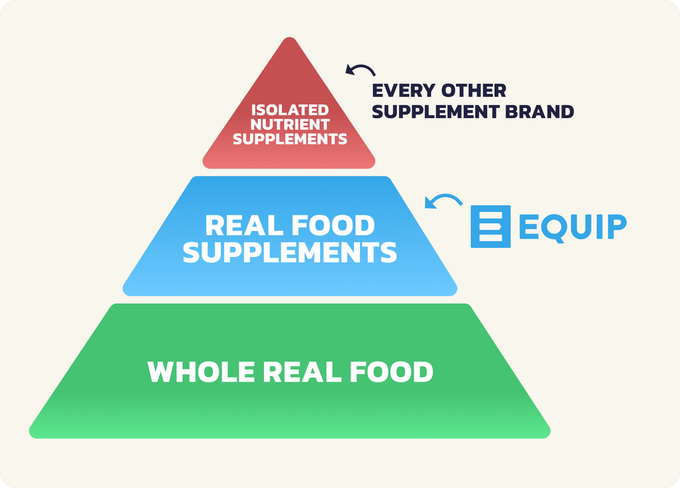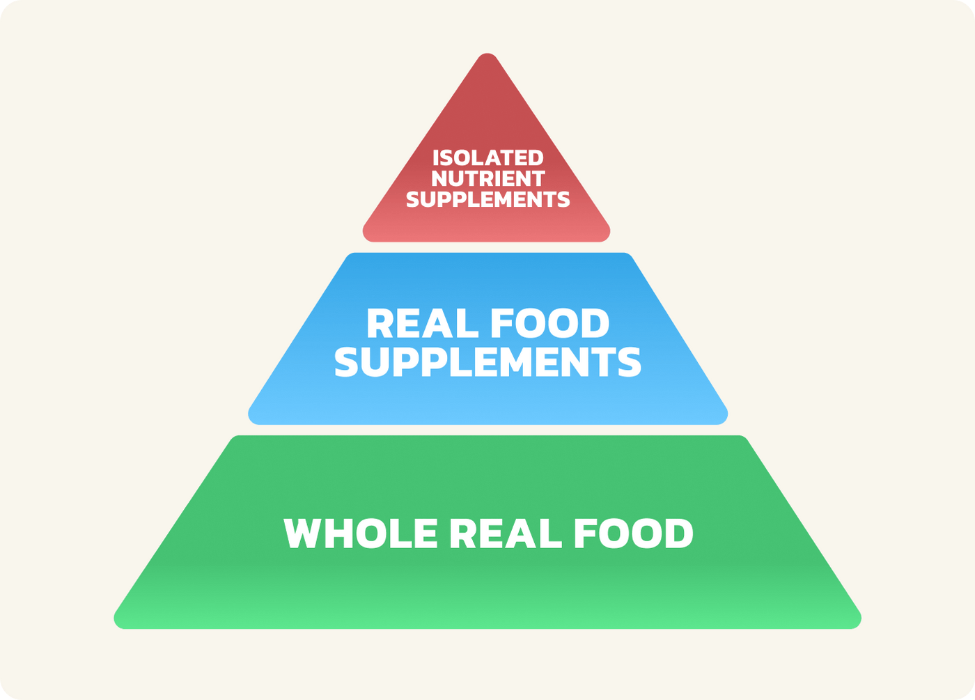 The truth is, no supplement is a cure all or magic pill. They don’t exist. Real food does the work. If you can’t get everything you need from real foods, the best thing to do is supplement with… more real foods. After all of that, adding in isolated nutrient supplements can be done in a strategic way. Think of it like a pyramid of nutrition.